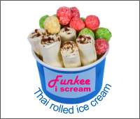 FUNKEE rolled ice creams are handmade on the spot with all-natural ingredients and no added preservatives for you to enjoy truly fresh made-to-order Ice Cream. With a creative menu, It’s made right before your eyes instead of being scooped from a bucket. Come experience FUNKEE I-SCREAM for yourself!